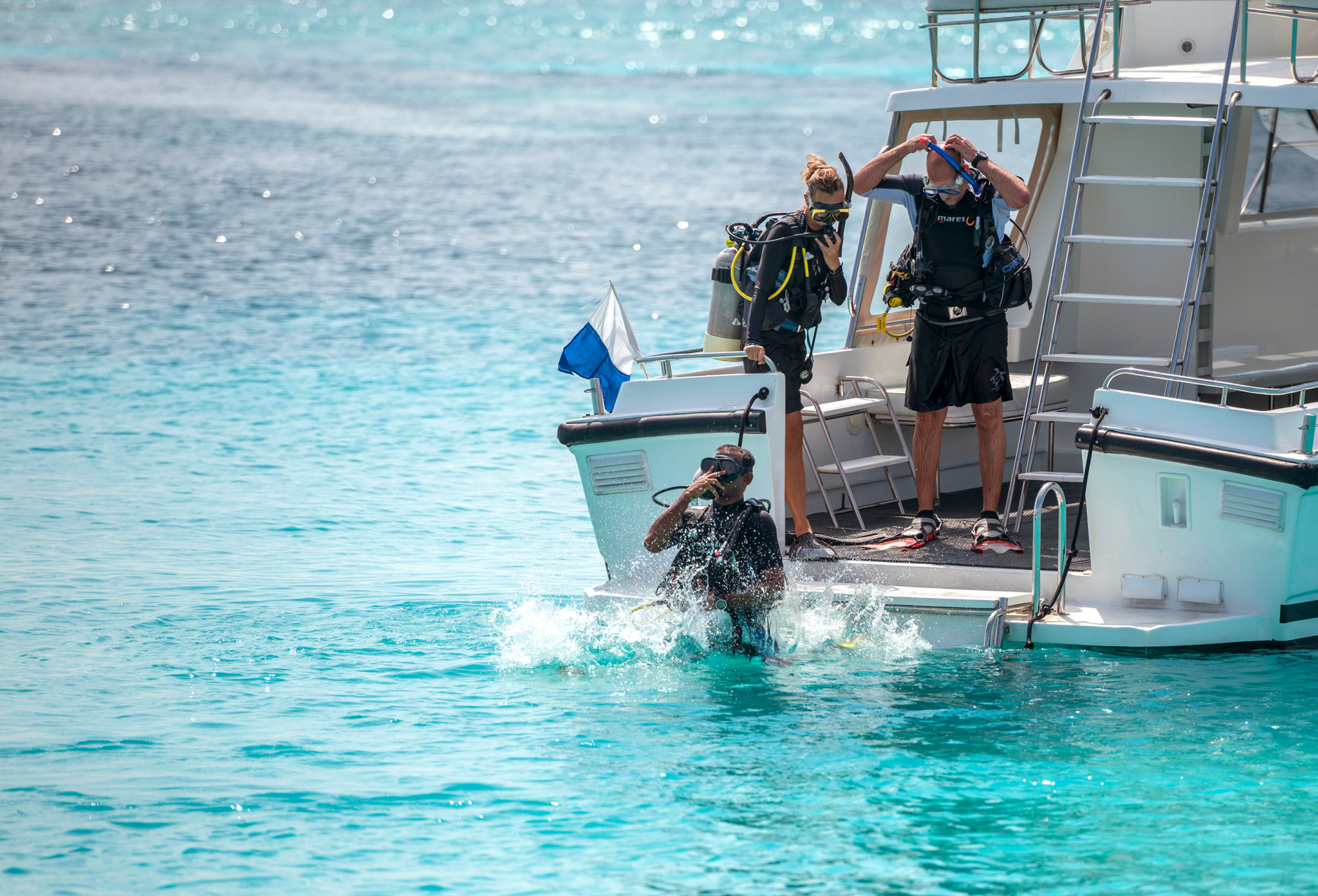 Dipping their feet into crystal waters, each Water Bungalow has an entrance lobby and a spacious bedroom with unbroken sea views. The dressing room leads to an enlarged bath overlooking the lagoon and an outdoor courtyard with a Maldivian open-air shower. Outside, a private sundeck has steps that lead into the turquoise lagoon and a sea level fresh water shower.