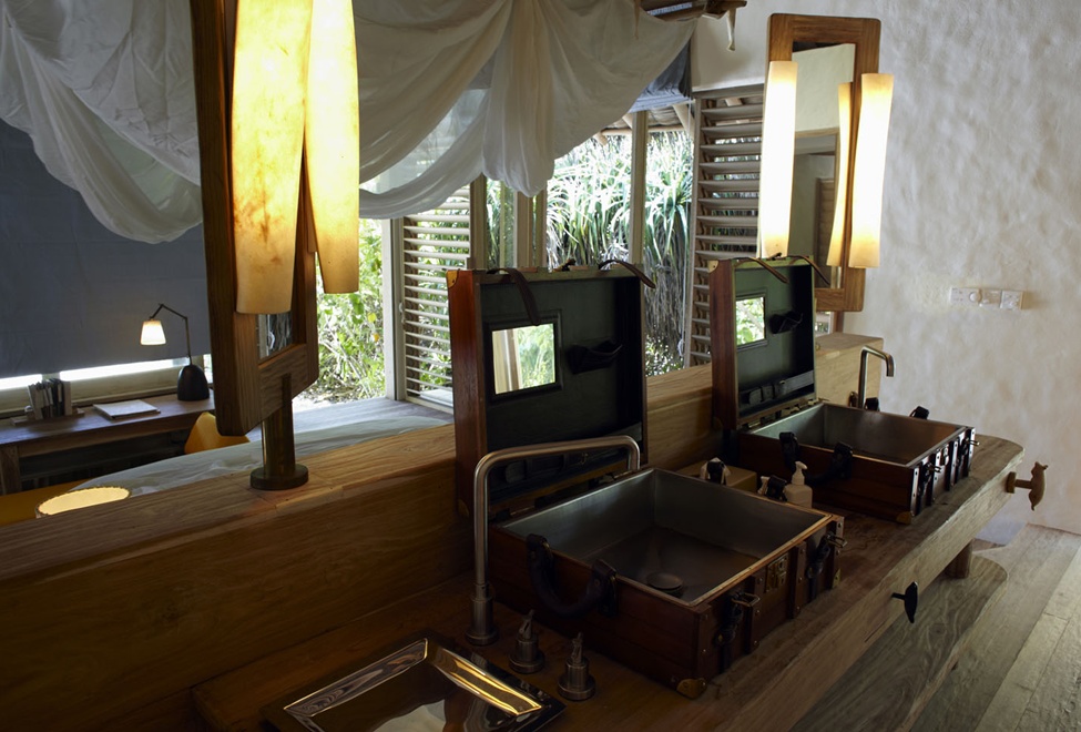 A short bicycle ride on the weathered timber jetties will lead you to these overwater havens, secluded by high wooden enclosures. With direct access to the sea, you can jump in for a swim or for a snorkel around the lagoon or relax on the overwater netting hammock. Whether you want to soak up some sun or enjoy the beautiful colors of the lagoon during the sunset you can sit back on the sun loungers or around the glass bottom table on the outside deck. The water villas feature a glass overwater bathtub with a view to the lagoon and an outdoor rain shower. For a unique panoramic view of the Indian Ocean, sapphire seascape and for catching an unforgettable colorful equatorial sunset, you can just climb on the treetop deck which features a comfortable seating area.