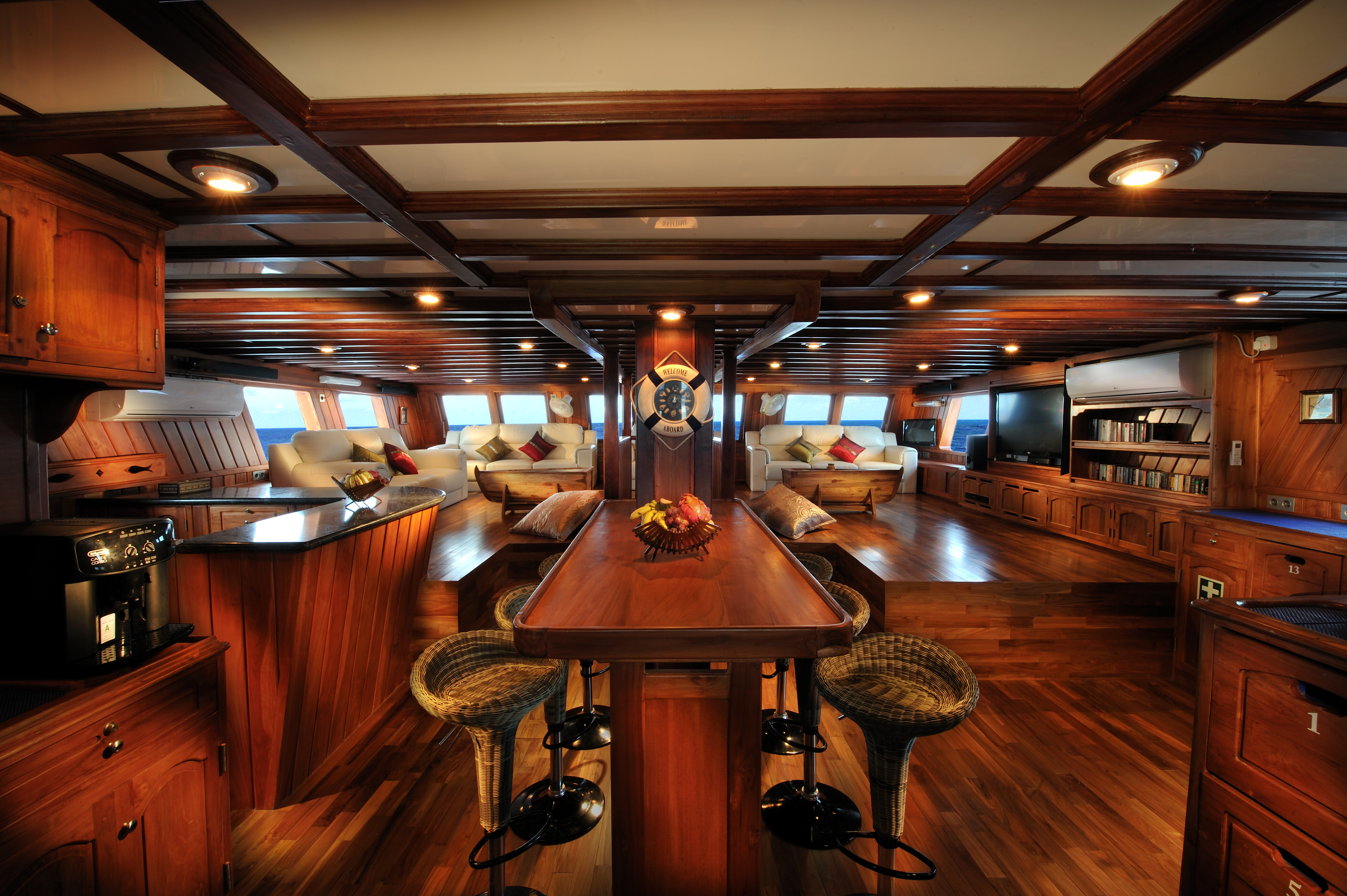 Built on the Indonesian Island of Sulawesi, she is a traditional “gaft rigged Phinisi” handcrafted from ironwood and teak. You will find no other dive liveaboard as beautiful in the waters of Micronesia, and being that she was built by divers for divers you can rest assured every need has been thought of for the modern diver.