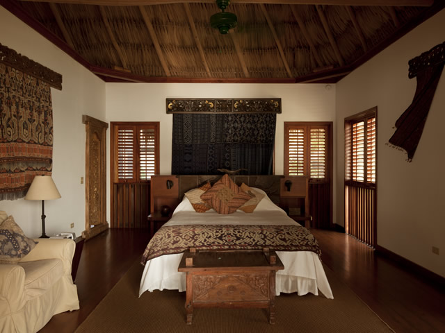 With a partial view of the Caribbean Sea, each Seaview cottage has a screened porch, spacious bathrooms with Japanese bath, and private walled garden with outdoor shower. All rooms feature Balinese hand-carved doors and décor.