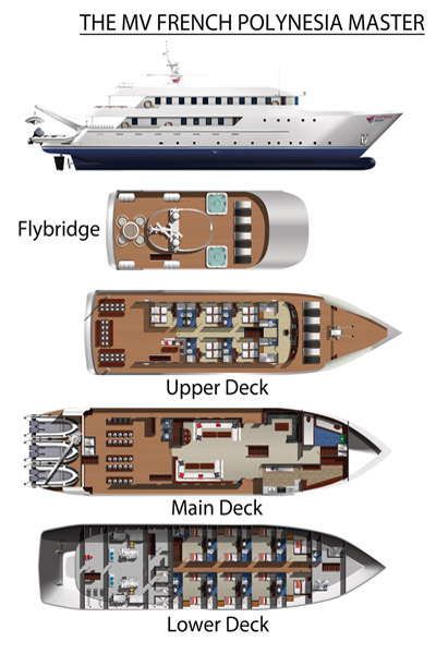 The diving day aboard the French Polynesia Master has a typical schedule as