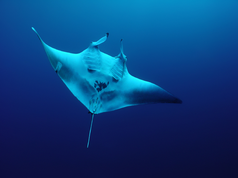 whilst over the reef paddletail snapper and barracuda form large schools. Manta