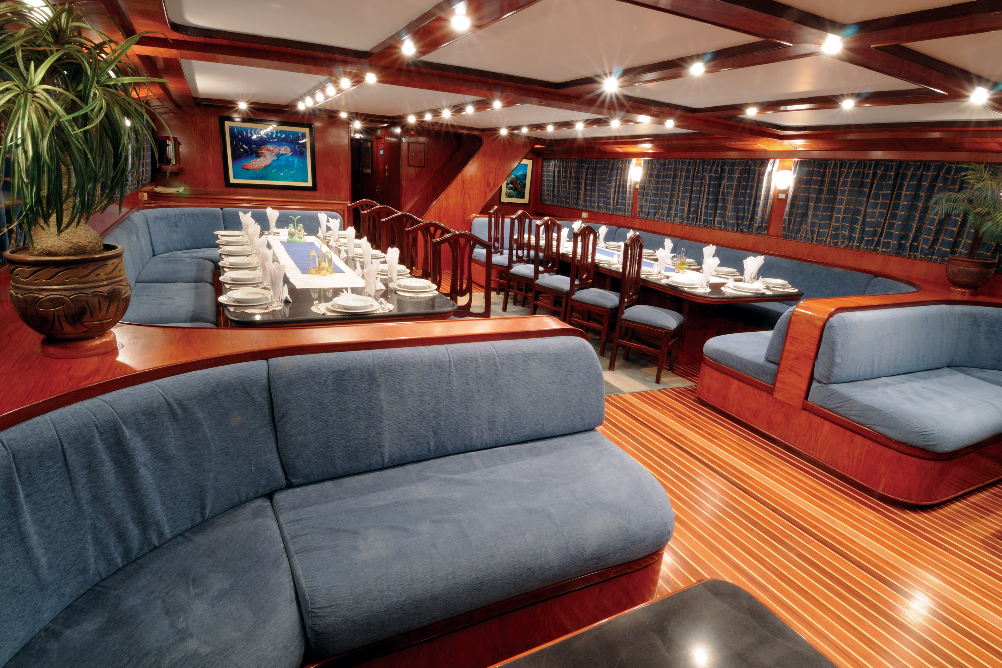 With a large dining area, totally separate sky lounge with state of the art entertainment system, shaded deck area and sun deck, there is always space to relax and enjoy the beauty of the Red Sea.