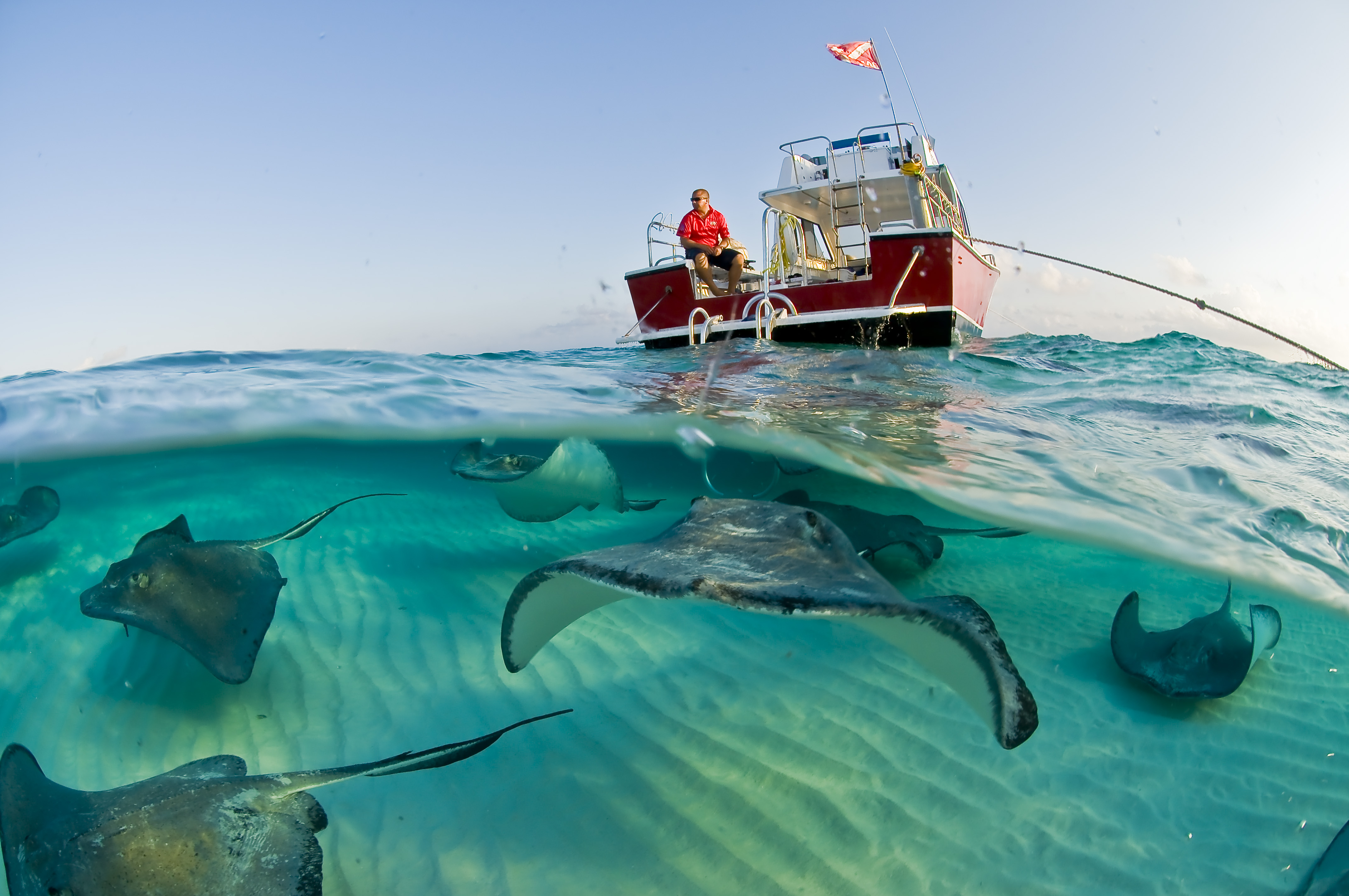 The Cayman Islands 365 dive sites are sure to leave even the most seasoned divers awestruck; with deep dramatic walls adorned with sponges and corals, shallow reefs of fish and small invertebrates, and an assortment of famous wrecks, all in perfect 80 degree Farenheit (approximately 26 degrees Celsius) water. Visibility often exceeds 100 feet revealing some of the world’s most diverse aquatic life. Grand Cayman is home to the worlds’s best 12 foot dive, the legendary Stingray City and the USS Kittiwake.