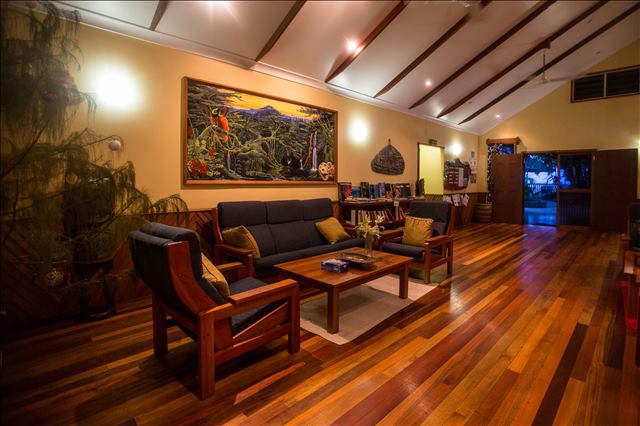 Some of these works of art took two years to complete and are unique to the Milne Bay culture. Covered walkways connect guest bungalows, which are complete with private balconies overlooking Hoia Bay. The air-conditioned bungalows are spacious with two queen beds and rosewood interiors that include desks, closets and lounge areas. Each room has a personal safe and coffee making facilities. Bathrooms are modern, completely tiled and have solar heated water.