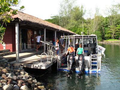 The library/lounge is air-conditioned, with comfortable seating and an extensive reference library, encompassing marine life, underwater photography, local terrestrial life and history information. A small fiction sectionis also housed. Television viewing is available. Please ask the hostess if you would like to view a selection of movies or documentaries on DVD.