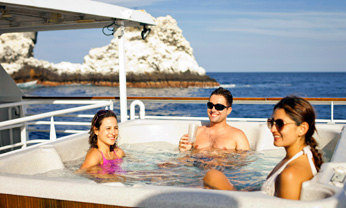 The crew and staff take great pride in their beautiful little ship. It was custom designed and built specifically for this kind of work and we keep it in tip top shape. No other ship in this part of the world boasts SOLAS certification (your guarantee of safety at sea), stabilization for an easier ride in open ocean, a mixed crew of men and women with decades of combined experience or all the little touches like a sparkling clear hot-tub, wide selection of micro-brew beer, fine wine, contemporary menu, etc.