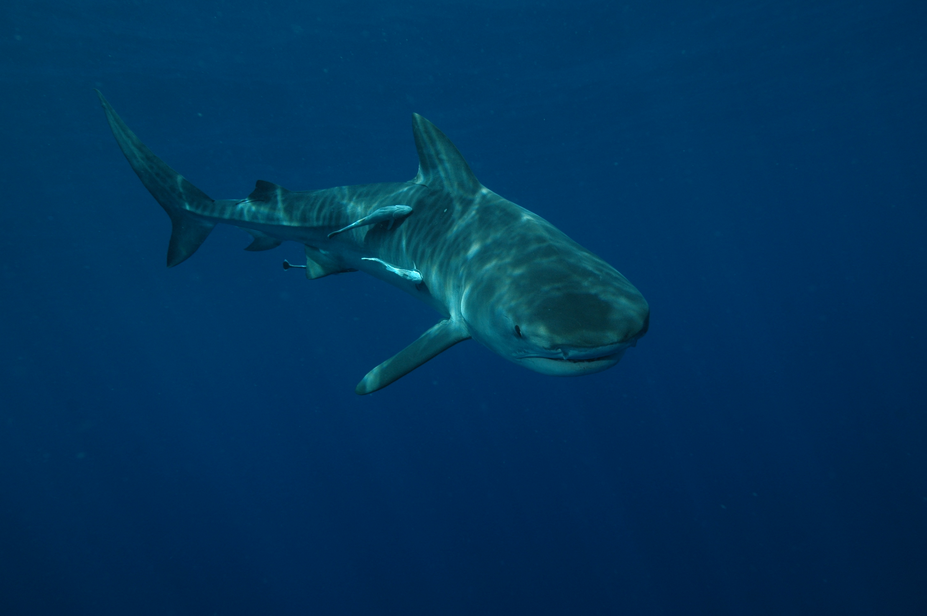 They generally have between two and six Tiger Sharks on a dive as well as Blacktip Sharks, Dusky Sharks and sometimes other species including Bull Sharks [known locally as Zambezi Sharks].