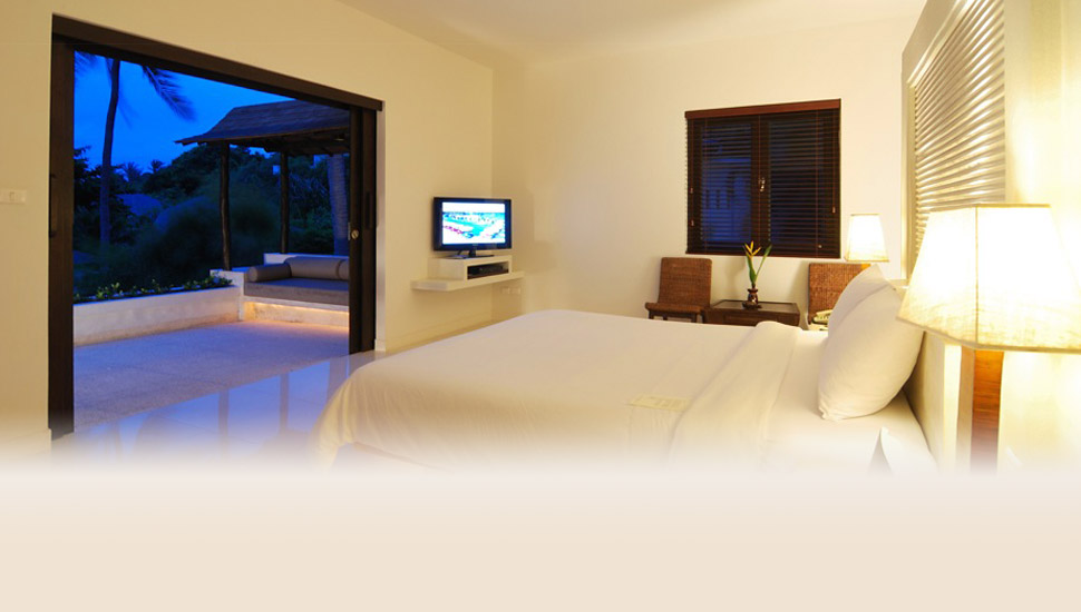 Two-bedroom Grand Pool Suites offer two spacious bedrooms and luxurious en-suite bathrooms with a combined floor area of 105m2 (not including terrace), 2 indoor daybeds, a large 10-meter infinity edge pool with underwater music and Jacuzzi offering direct swim-up access tomaster bathroom; and large terrace and outdoor daybed to enjoy spectacular sunset views over the Andaman sea.