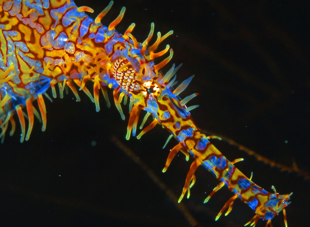 Enormous Gorgonian sea fans and a kaleidoscope of colorful soft corals, only minutes away, are home to Hawksbill Turtles, Black Tipped Reef Sharks and an entire world of stunning and beautiful macro fauna. Flamboyant nudibranchs, shy Tiger Sea Horses and elusive Elegant Ghost Pipefish can all be discovered hidden in the nooks and crannies of the reefs skirting the six island archipelago.