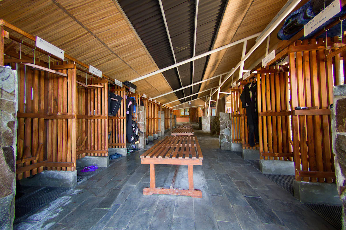 Each guest is provided with a “locker” to store their equipment in the spacious covered Gear Area. The gear is brought to the boat and returned to the locker by the Dive Staff each day. Guests need only concern themselves with their smaller items. The large Gear Area is located only a couple meters from the waterside where the boats are boarded, no long walks down a pier or across the Resort. The area is equipped with plenty of bench space to allow for easy donning and doffing of wetsuits. Hooks are provided at each station for hanging dive towels, provided after the dive.
