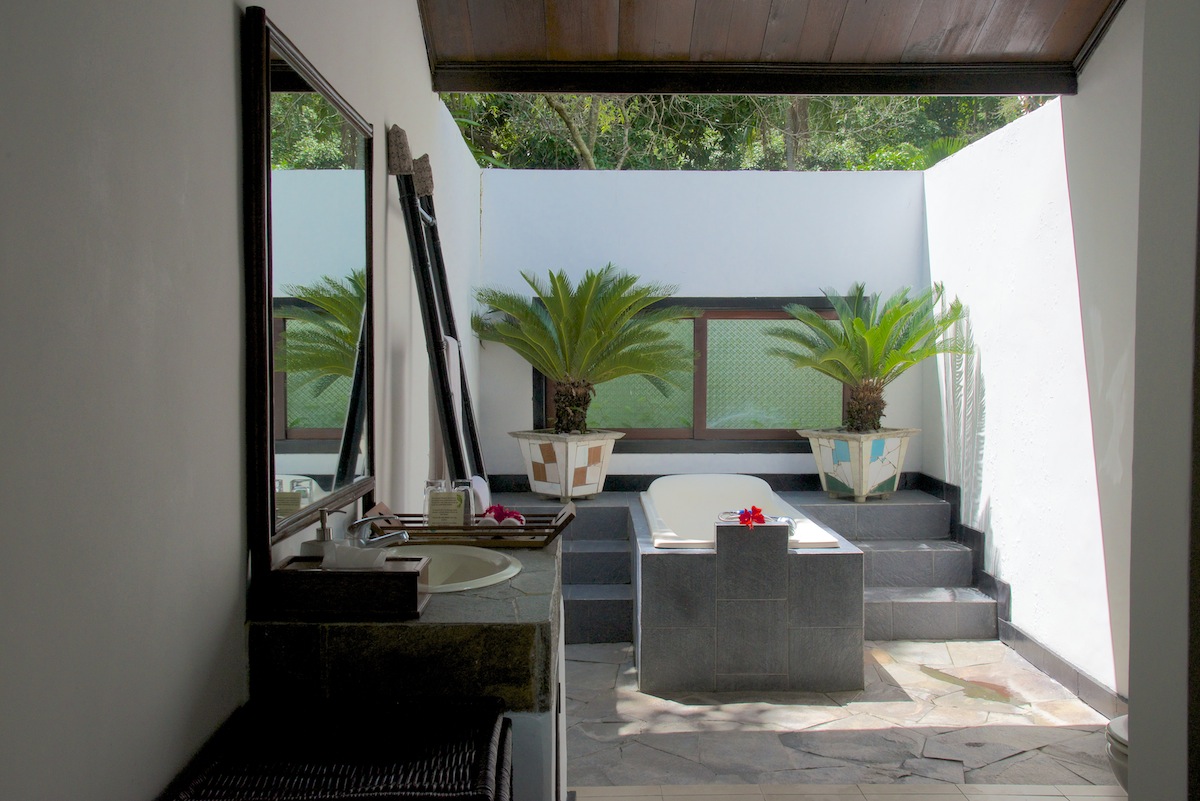 All but one of these cottages include an open bathroom complete with open-air shower as well as a closed shower. Four of these cottages are designed as two separate rooms—living room and bedroom—allowing comfortable accommodation for up to four people.