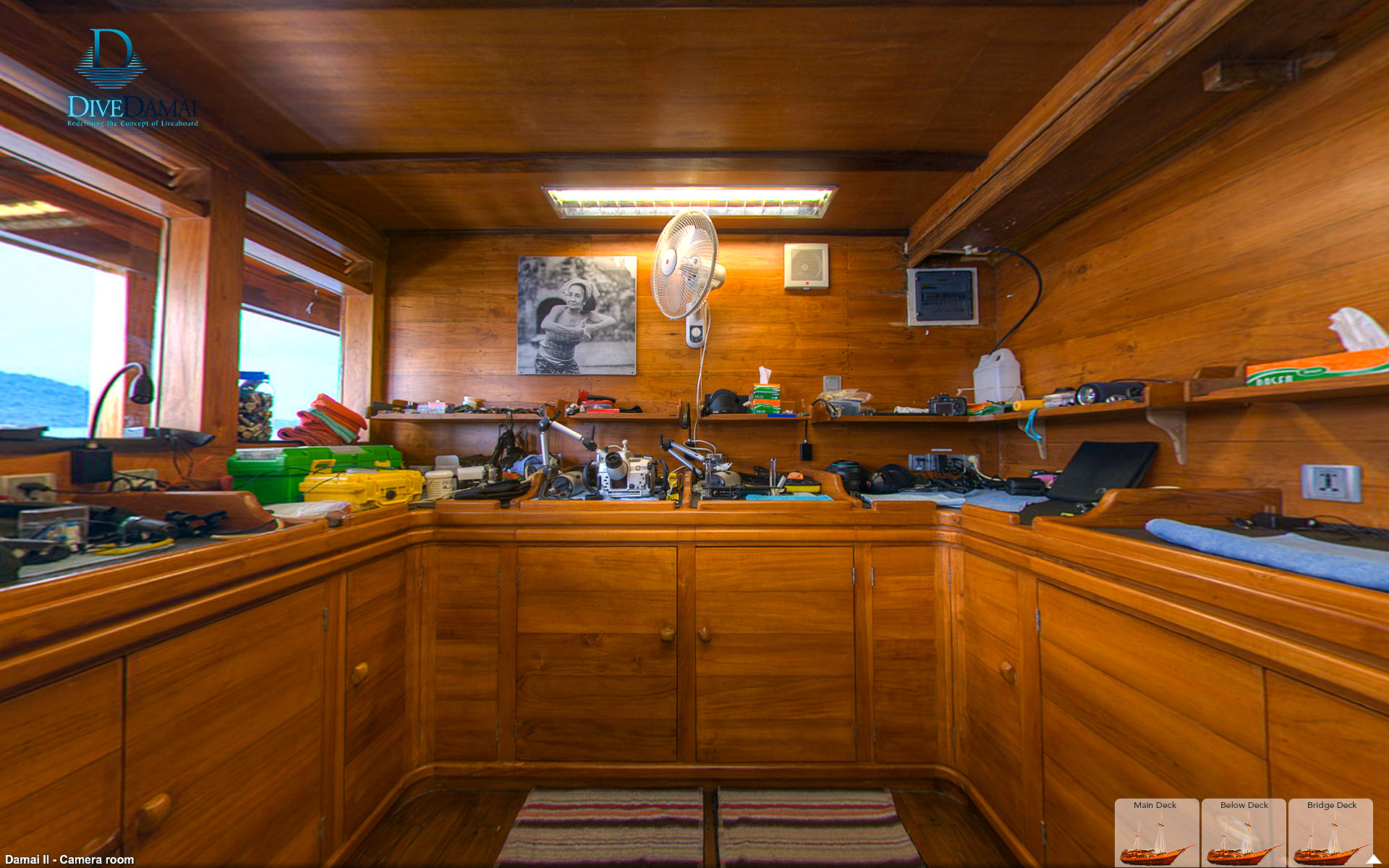 The dive systems have been made even more accommodating on the new vessel. The dive station is larger and is served by large individuals rinse tanks. The camera room has been enlarged also. The 4 diver to 1 guide ratio that Dive Damai customers enjoy so much on the MY DAMAI I has, of course, been maintained and they have added 2 custom designed high speed tender boats.