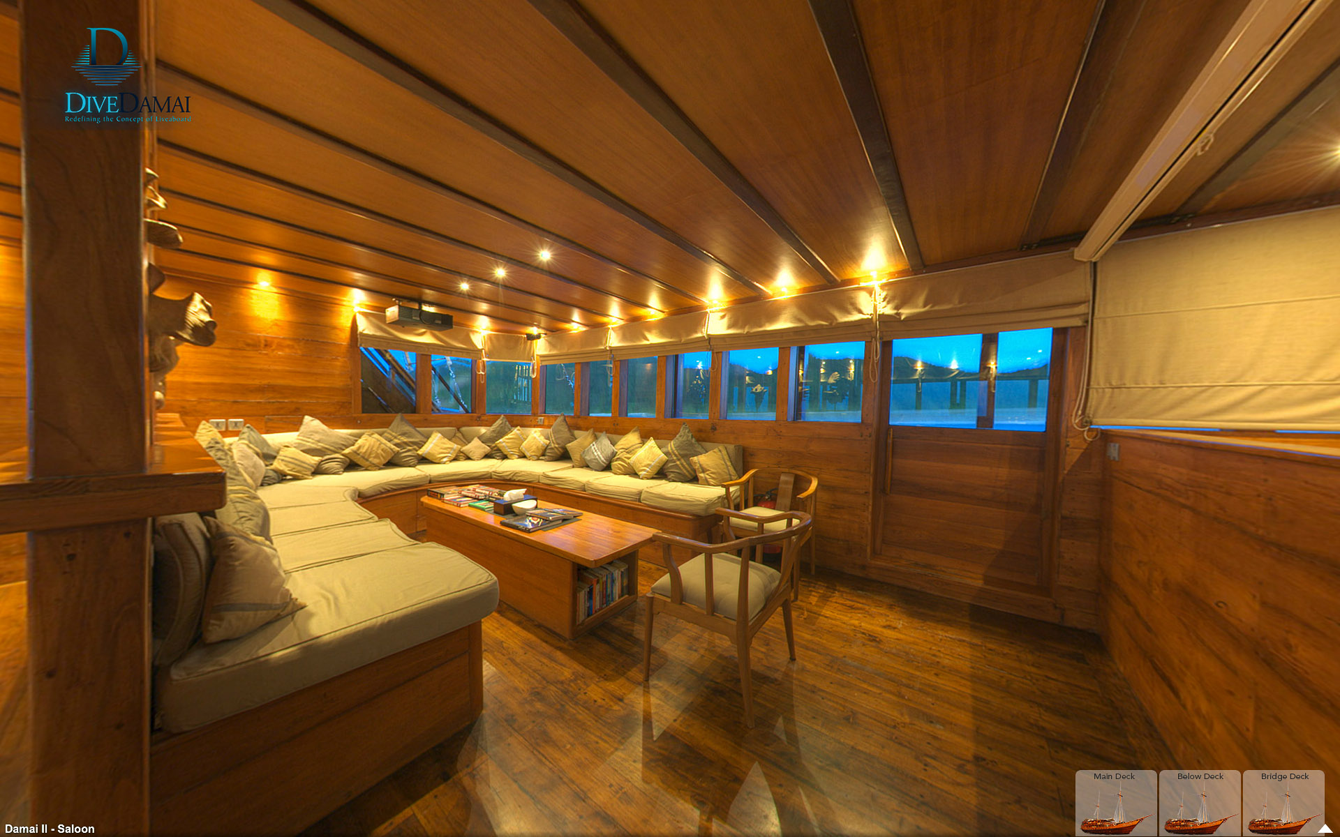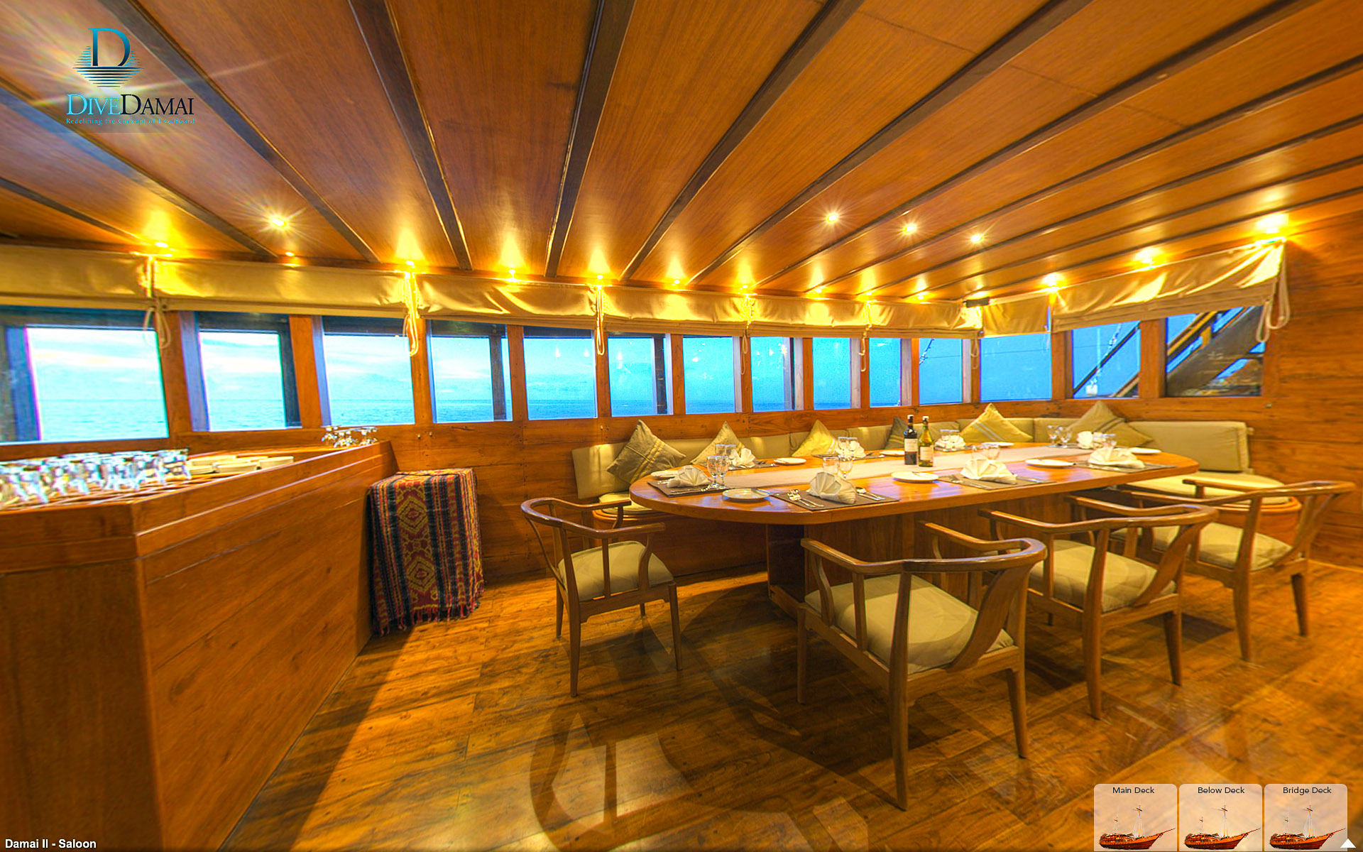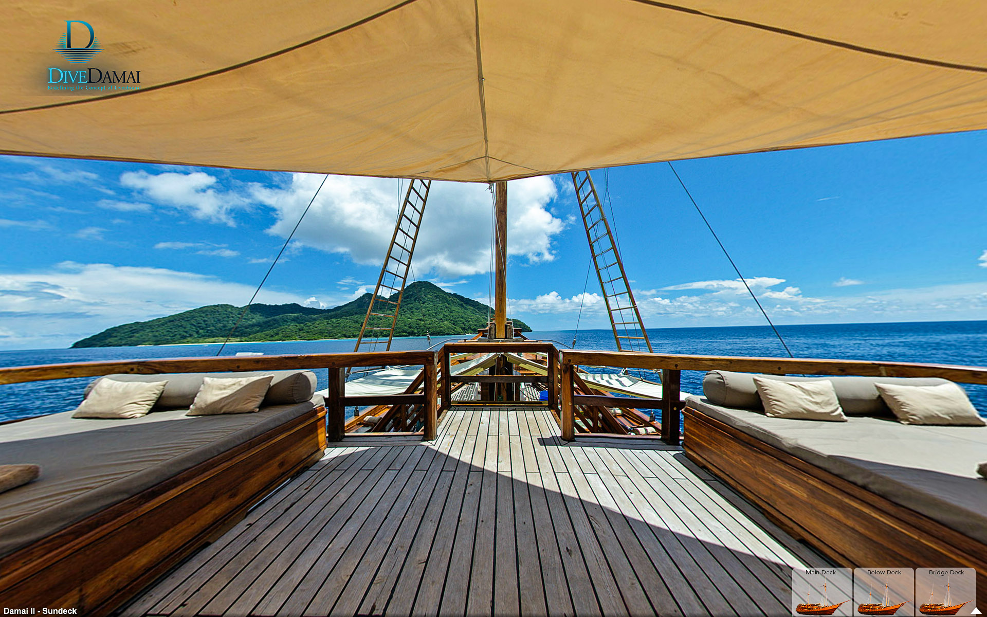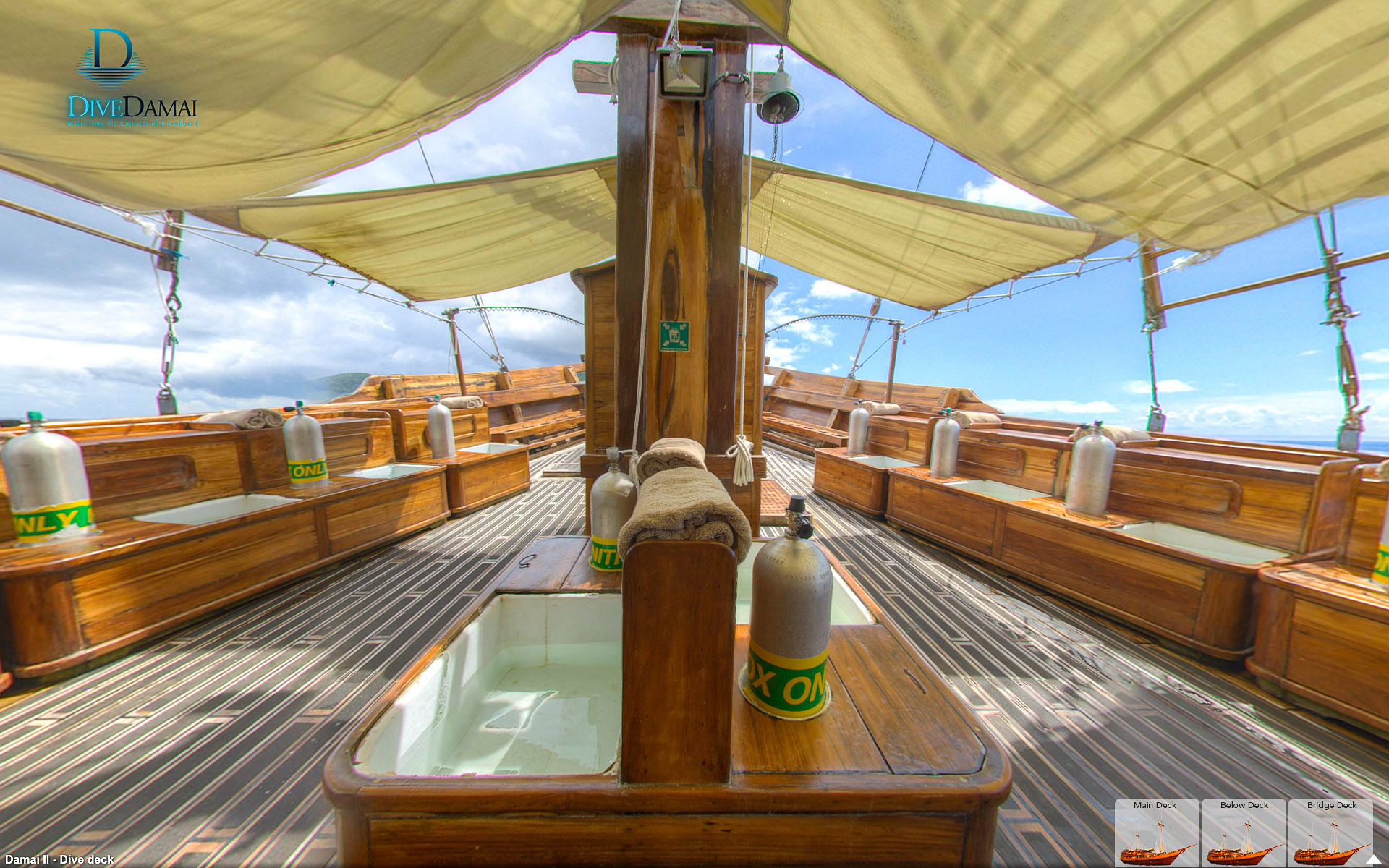 MY DAMAI II has a deck length of 40 meters and a beam of 9 meters at its widest point. It has been built to an uncompromising standard and fitted out with all the latest diving, navigation and safety equipment to ensure that the level of service appreciated on our first vessel is maintained and, where possible, improved upon. The new vessel is slightly larger than the first ensuring three large outside deck areas with an outside dining facility, including the famous massage and spa treatment area and plenty of extra lounging and sunbathing space. The crew to passenger ratio is the same as the first vessel.